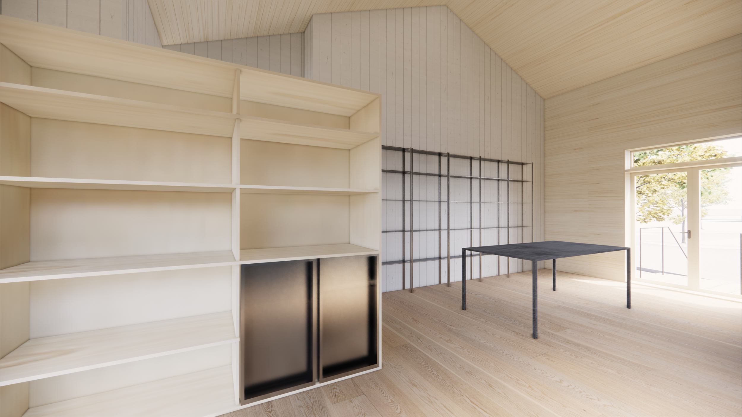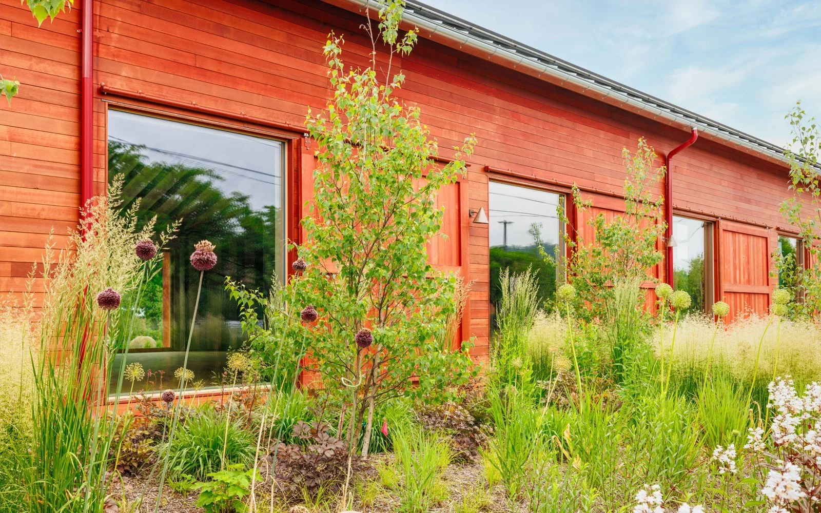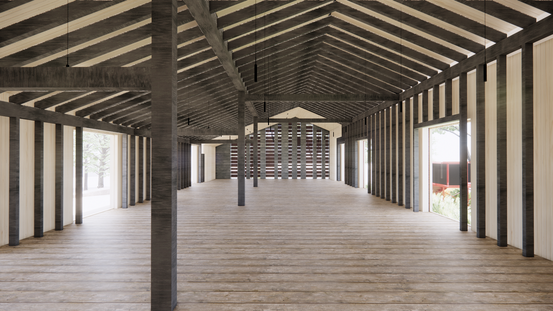 The design preserves the barn’s original long-span, open-bay character, allowing the interior to remain expansive and adaptable while accommodating a range of new uses, from events and gatherings to retail and food service. At the north end of the building, a new wine shop introduces a public facing program focused on regional wines and products, while a 600 square foot addition houses a commercial catering kitchen that supports larger events without compromising the integrity of the historic structure.