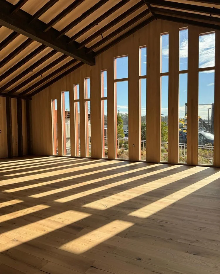 A comprehensive envelope upgrade—including new insulation, roofing, insulated wood cladding, and high-performance triple-glazed windows and doors—forms the foundation of the building’s energy strategy. The project was awarded a NYSERDA energy grant to support the pursuit of net-zero energy use through a combination of highly efficient enclosure design, energy-recovery mechanical systems, and a roof-mounted solar canopy sized to offset the building’s annual energy consumption.