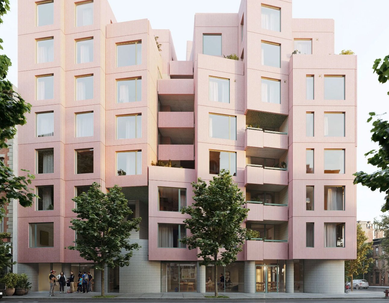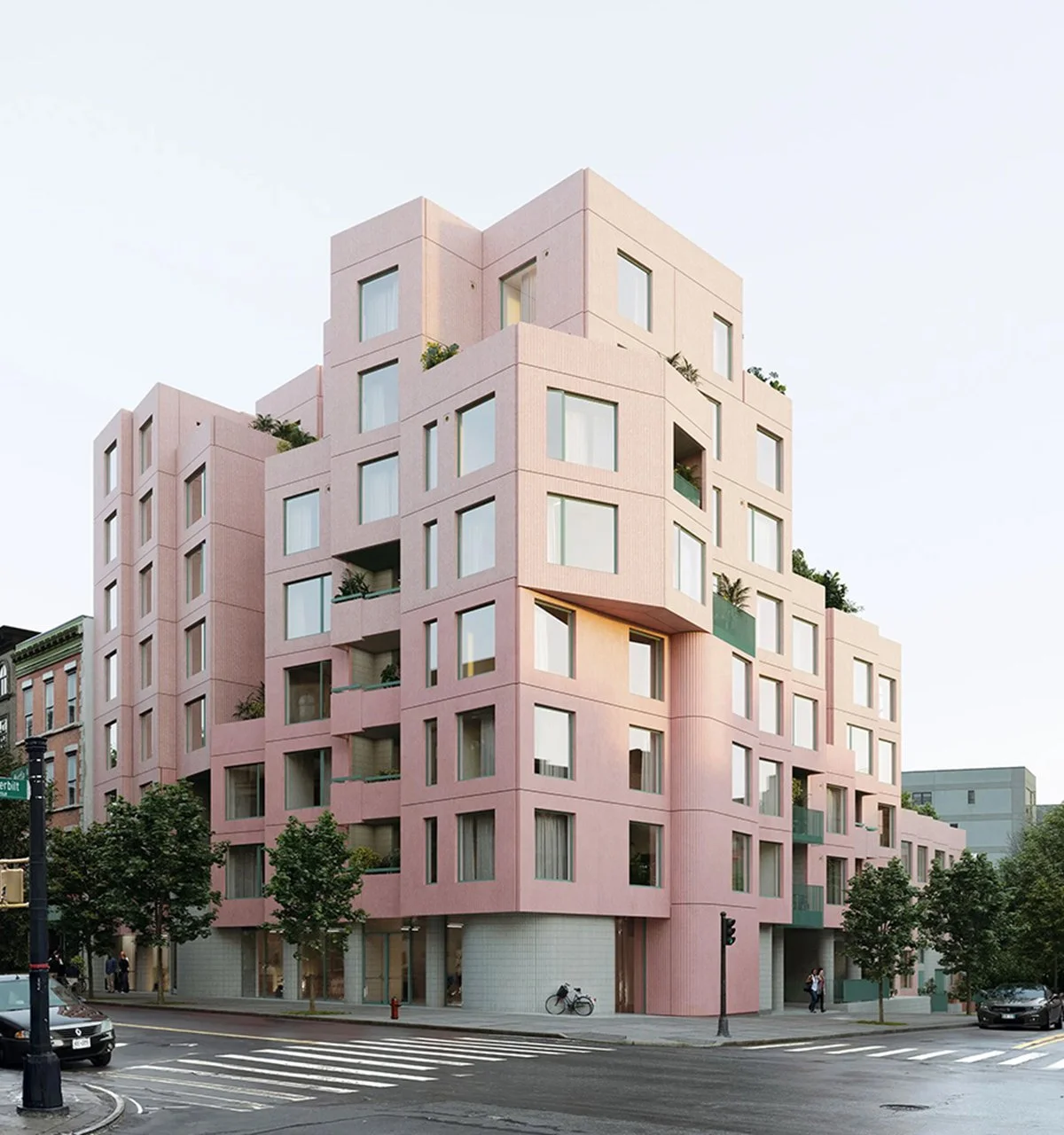 The form of 144 Vanderbilt Avenue is shaped by the contrasting zoning conditions of its site, rising to greater height along Myrtle Avenue while stepping down toward the lower scale residential fabric to the north. This staggered vertical profile mediates between densities, allowing the building to respond to its urban context without relying on a singular massing gesture.
