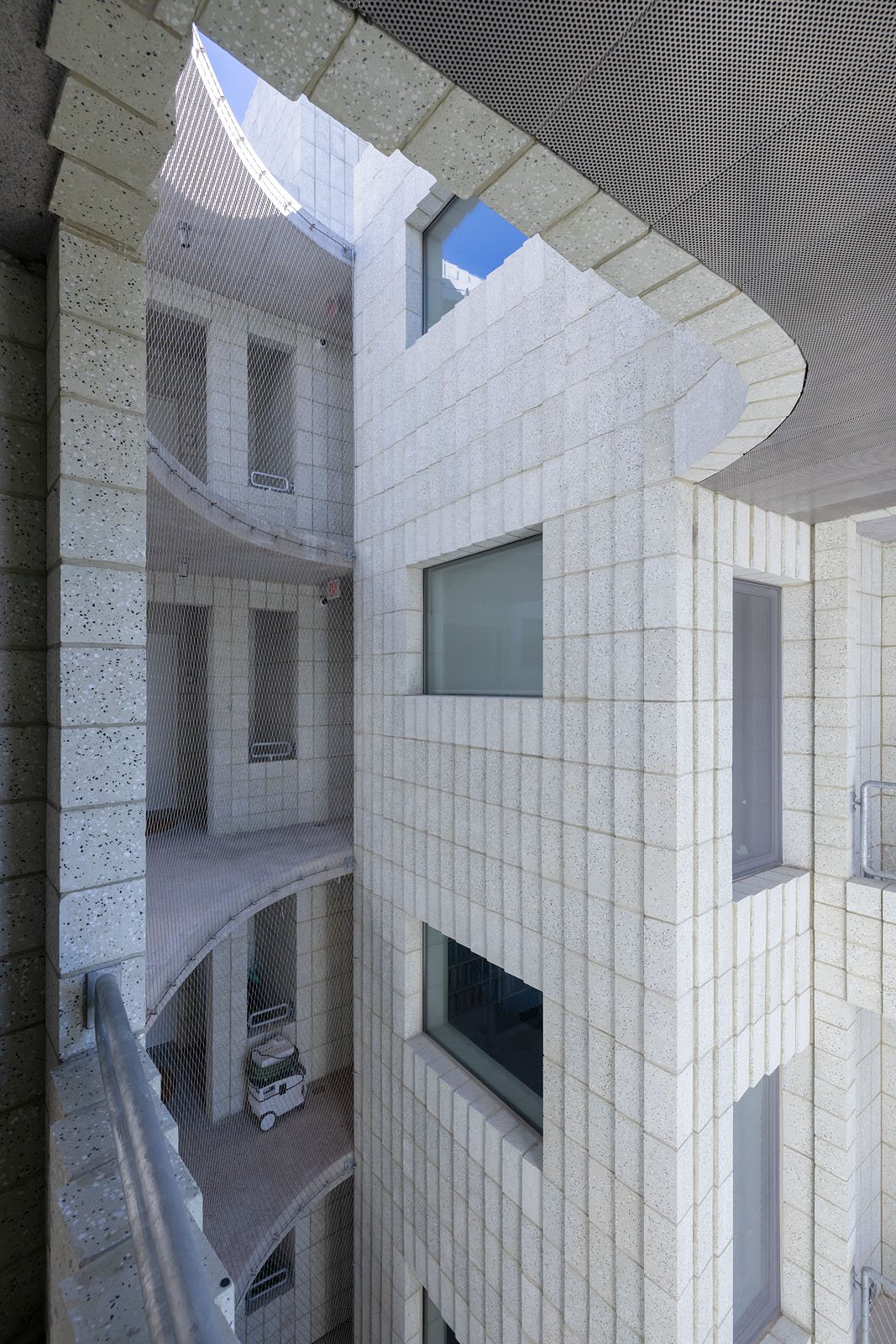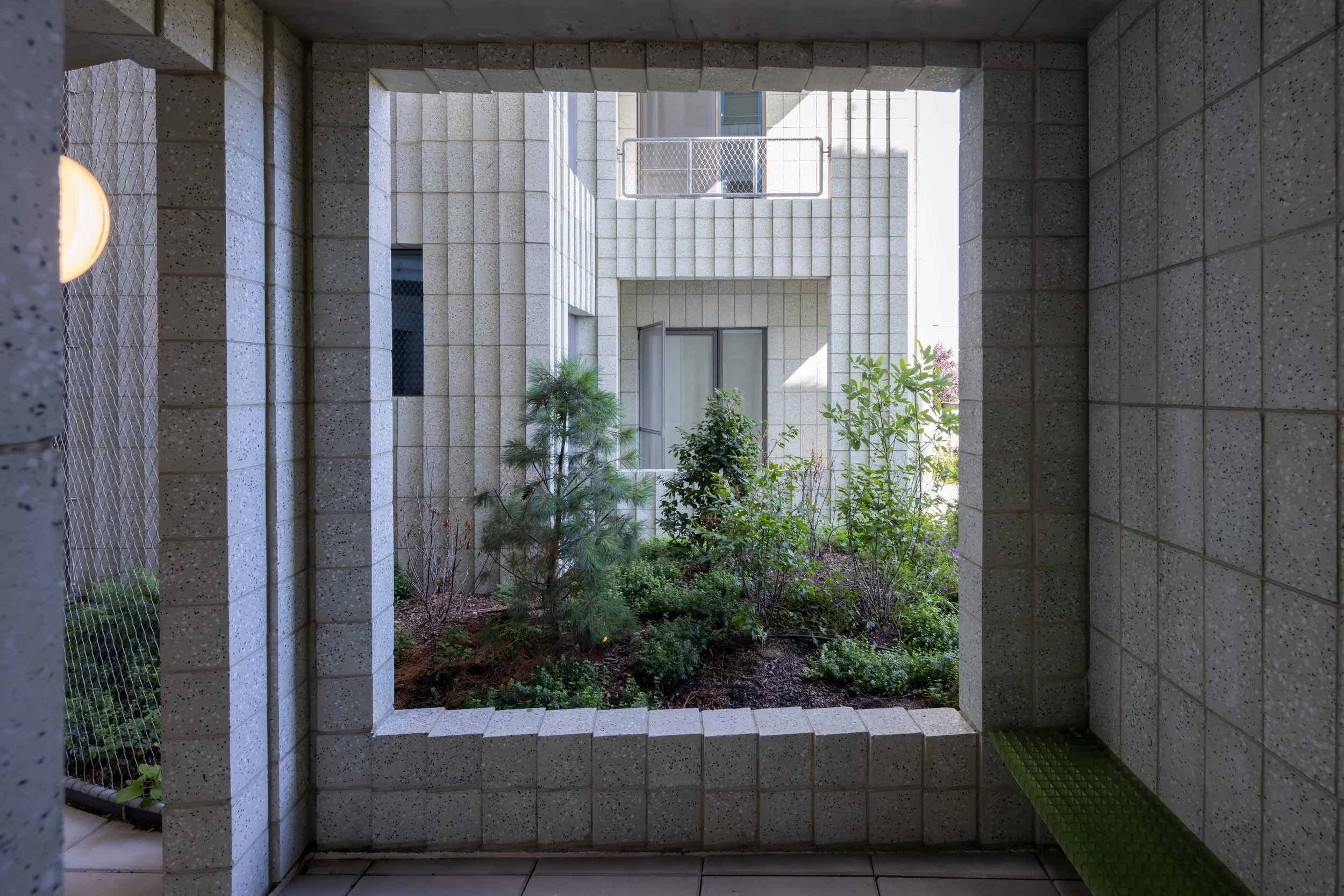 The entry to each dwelling unit is entered through partially enclosed exterior vestibules, these space are neither fully public nor private providing a buffer and allowing the domestic space to emerge gradually from the shared circulation.