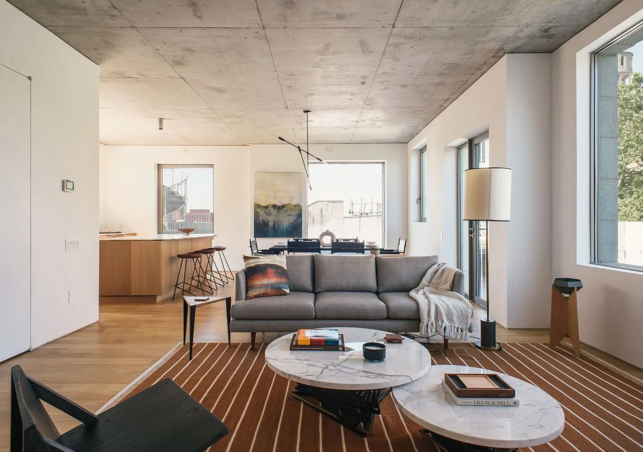 The project involved the ground up construction featuring 18 units, including three penthouse suites. In addition to the architectural design, the scope included the selection of finishes and fixtures for each unit. The design concept aimed to create bright, minimalist living spaces by showcasing exposed materials, such as the concrete structural slab ceilings in the living areas and bedrooms, which also maximized ceiling heights. Mechanical systems and services were carefully coordinated and concealed within walls to maintain clean, uncluttered interiors. Each unit includes two outdoor spaces, seamlessly extending the living areas to the outdoors in favorable weather.