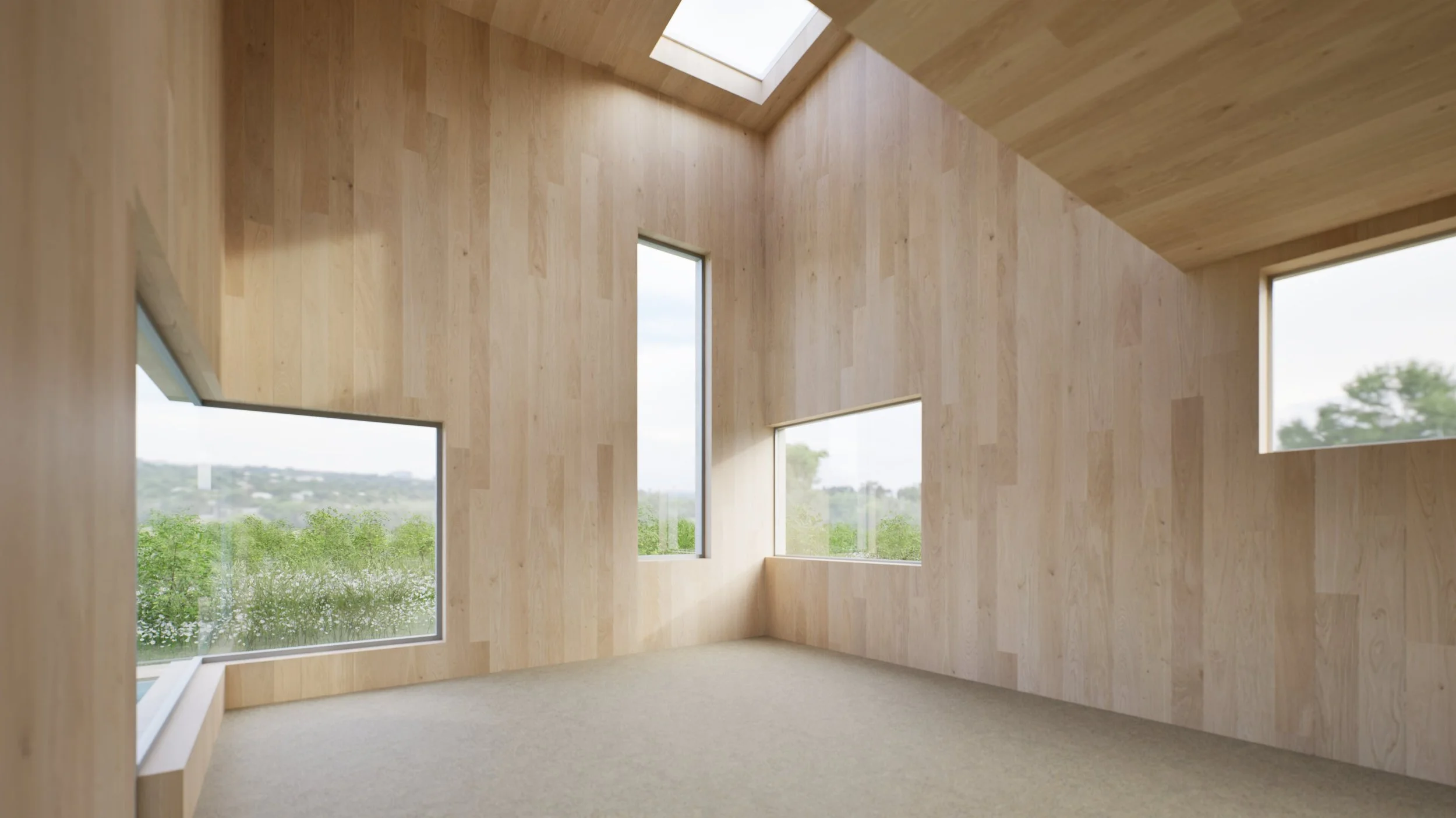 In the Pavilion house each volume functions as an independent module, allowing for variation in ceiling height, natural light, and window placement to suit its specific use: tall and open for shared living spaces, compact and quiet for bedrooms, or softly illuminated for studios and retreats. Because each volume is structurally self-supporting, the layout is inherently flexible it can adapt to different sites, evolve over time, or expand as your needs change.