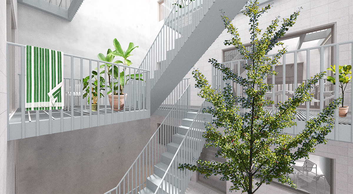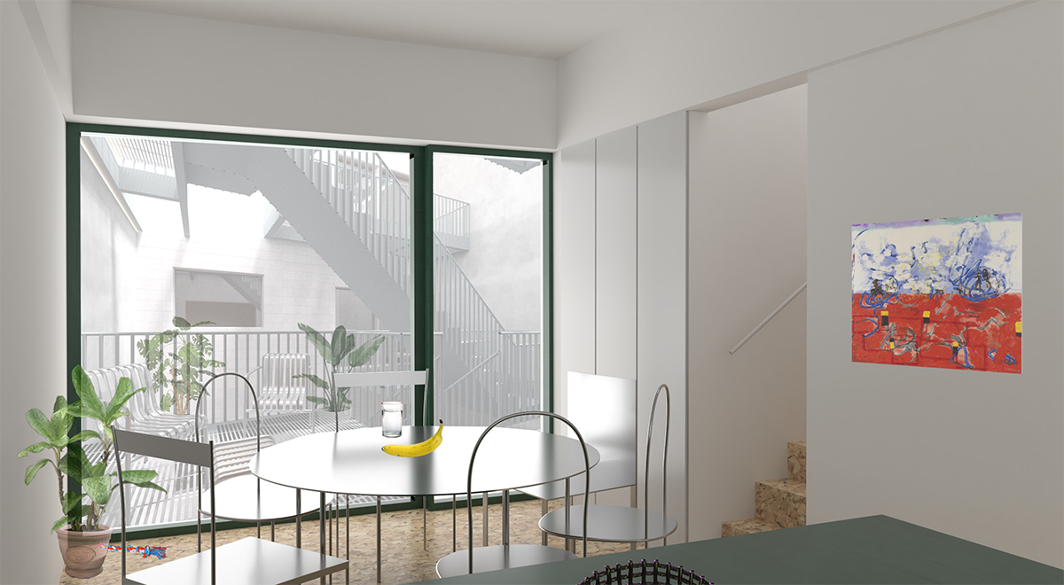 As a shared space, the interior court extends the living environment beyond the individual units, creating opportunities for informal gathering, visual connection, and outdoor use throughout the building. The project continues and refines ideas previously explored at 9 Chapel and 450 Warren, where circulation, light, and shared spaces are treated as active architectural elements that shape daily experience rather than residual space.