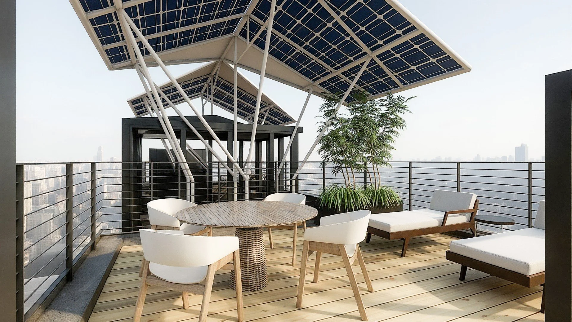 Environmental performance is embedded at every scale of the system. High performance panelized envelopes minimize thermal bridging and achieve low U values, while airtight compartmentalization, heat-pump HVAC systems with heat recovery, and demand controlled ventilation support passive house aligned comfort and efficiency targets. On site photovoltaic panels, paired with lithium ion phosphate battery storage, provide renewable power for daily operation and backup resilience, enabling buildings to remain habitable during grid outages and reducing long term operational energy costs. The units are configured as duplex and one triplex unit and each have access to outdoor spaces and cross ventilation allowing for natural ventilation.