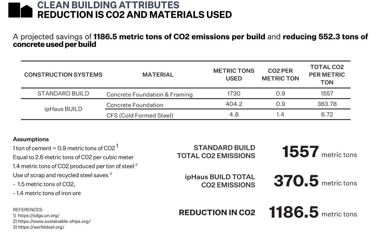 Central to the ipHaus approach is an integrated design for manufacturing strategy. Standardized wall, floor, roof, window, and door panels are fabricated off site and assembled by hand using lightweight equipment, significantly reducing construction time, noise, and reliance on heavy machinery. A typical core building can be assembled in approximately two months, with total project completion in under six months, nearly three times faster than conventional construction, while improving job site safety and predictability.